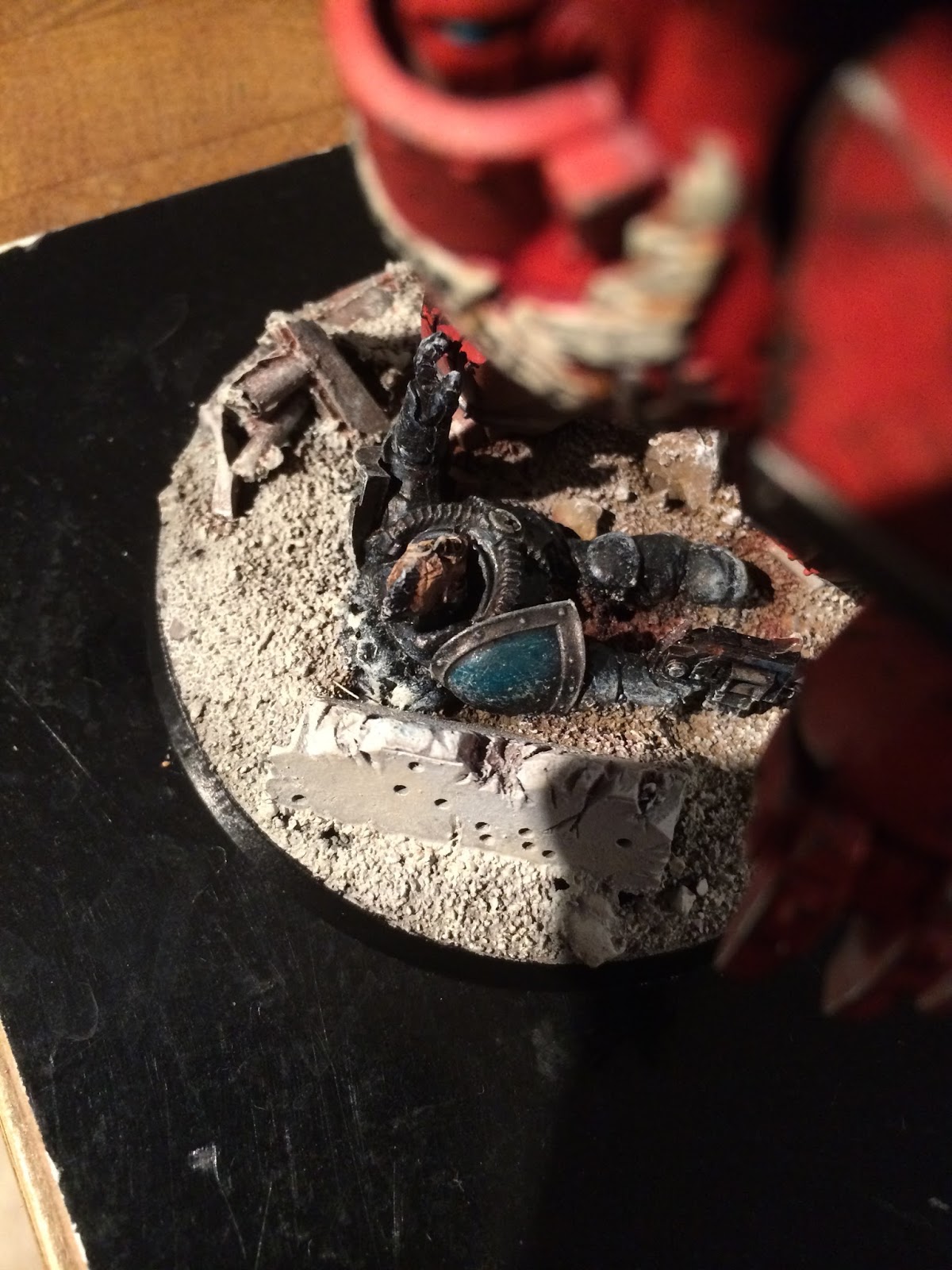 For those who are wondering about the blood drop, when I carefully trimmed off the minotaurs chapter symbol from the chest I was able to carve the resin into a fairly centred drop shape. (It is slightly askew but the leaning pose hides it well!)
