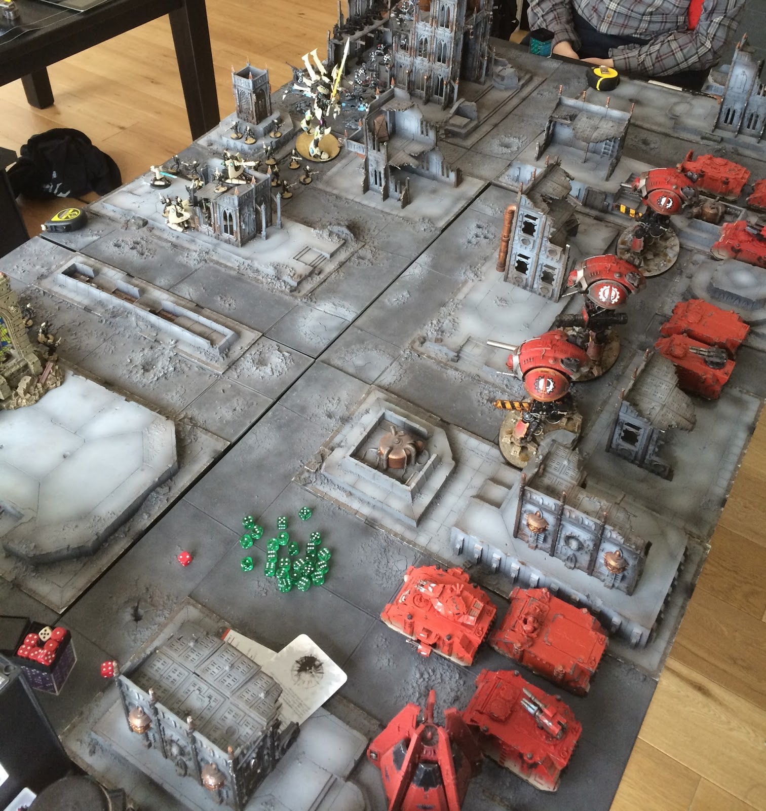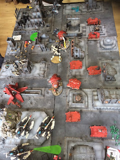 A back view. I chose (all but one) blood angel bits that had blood drop gems on to push the obvious chapter tie given I was going for two fairly distinct pieces from other chapters to make up the bulk of the model and have a more even distribution of red bits all over the model to draw the eye.